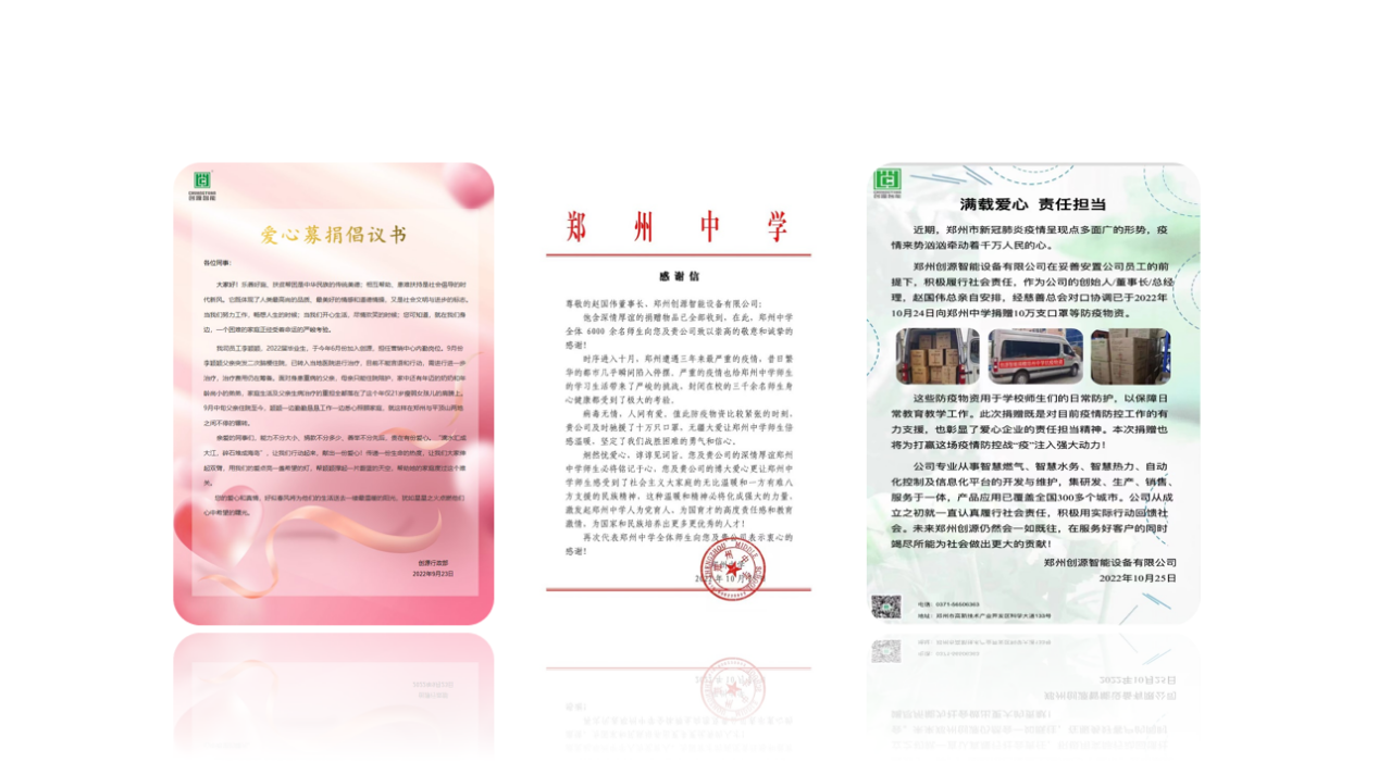2010年公司成立之初,即向革命老區(qū)---河北省西柏坡華潤集團承建的紅色希望小鎮(zhèn)捐贈無線遠傳智能燃氣表及手持抄表設(shè)備、運營軟件、電腦等價值40余萬元的軟/硬件裝備。并舉辦愛心募捐活動、在抗疫斗爭中積極捐贈物資。
